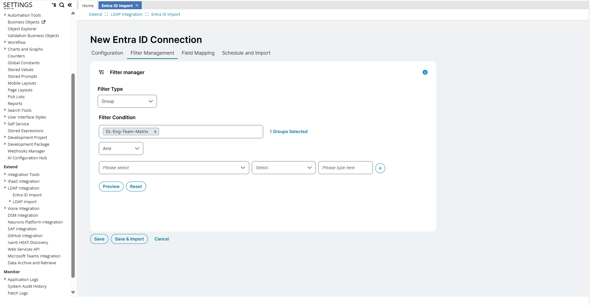 2.Open the Configuration console, scroll and select LDAP Integration > Entra ID Import.