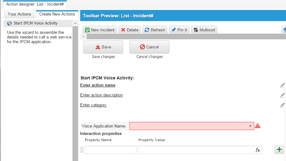 •Graphical Action Designer: Start IPCM Voice Activity Quick Action
