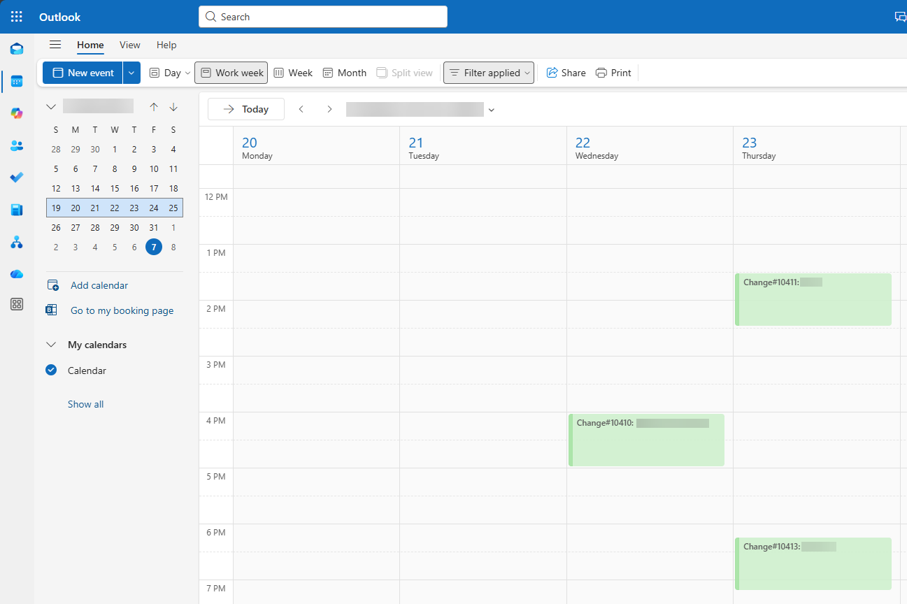 The calendar item in ITSM has been successfully synchronized with Office 365 Outlook.