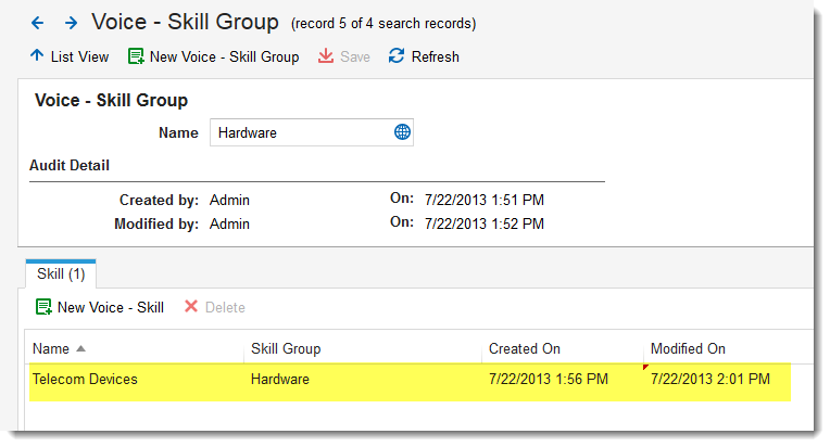 3.Click New Voice - Skill Group. The Skill Group page appears.