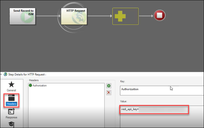 6.Select Headers and add the necessary authorisation header. In this case, rest_api_key={your REST API key}.