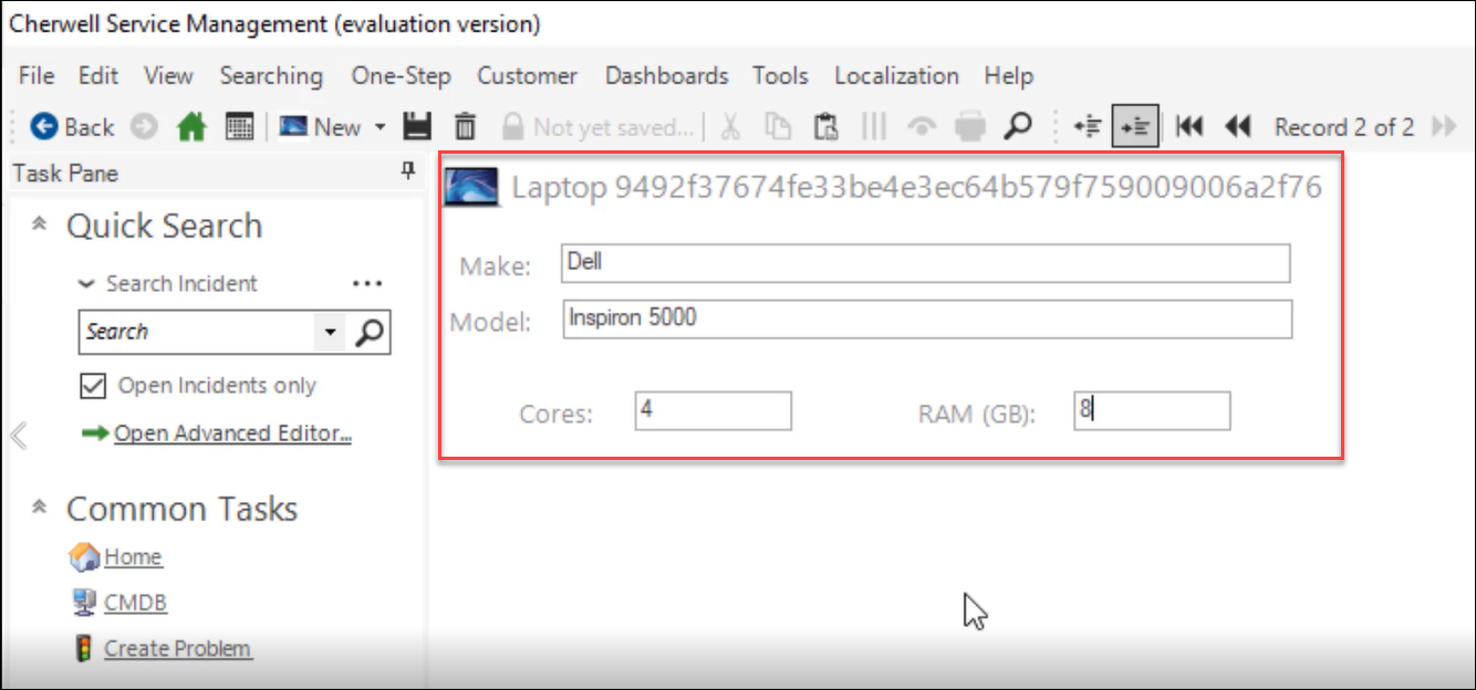 2.Go to CSM and create some new laptop records using a CSM Client (Desktop Client shown):