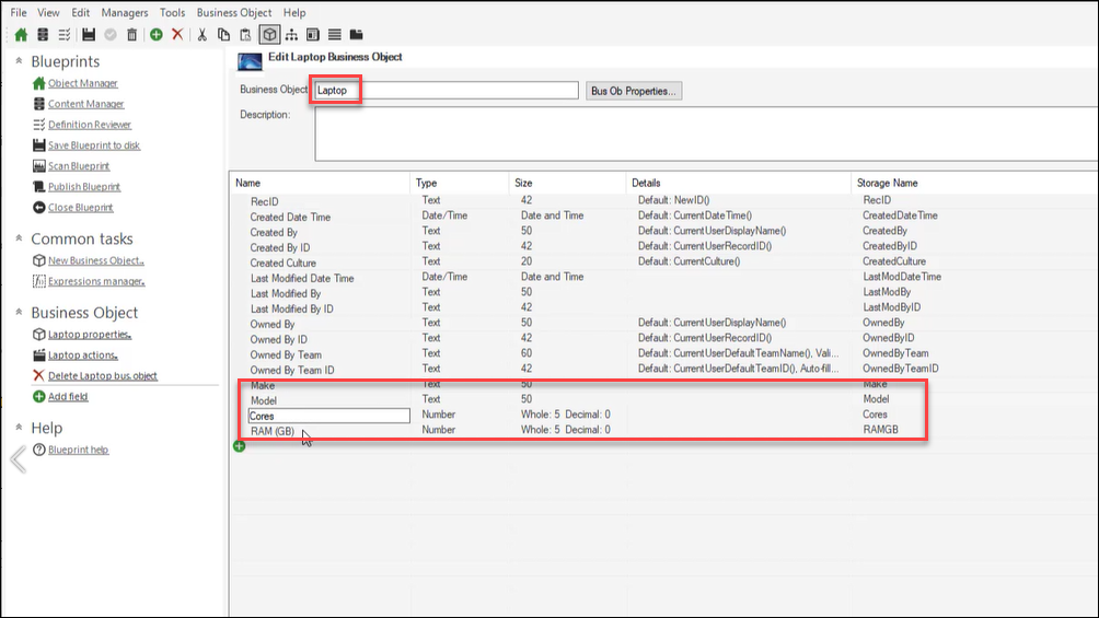 1.In CSM, create a business object called Laptop that mirrors one already created in ITSM.