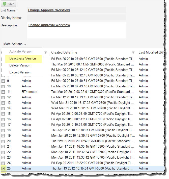4.Choose More Actions > Deactivate Version.
