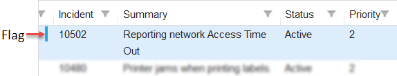 When viewing a list of records, the application displays a bar next to a record that only the record owner can see. The bar alerts you that there is a new note or incoming email. The application displays a toolbar button that lets you set the flag as needed.