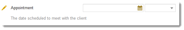 Combines the date and time fields into one line. Allows users to enter a date from a calendar and a time from a drop-down list. |