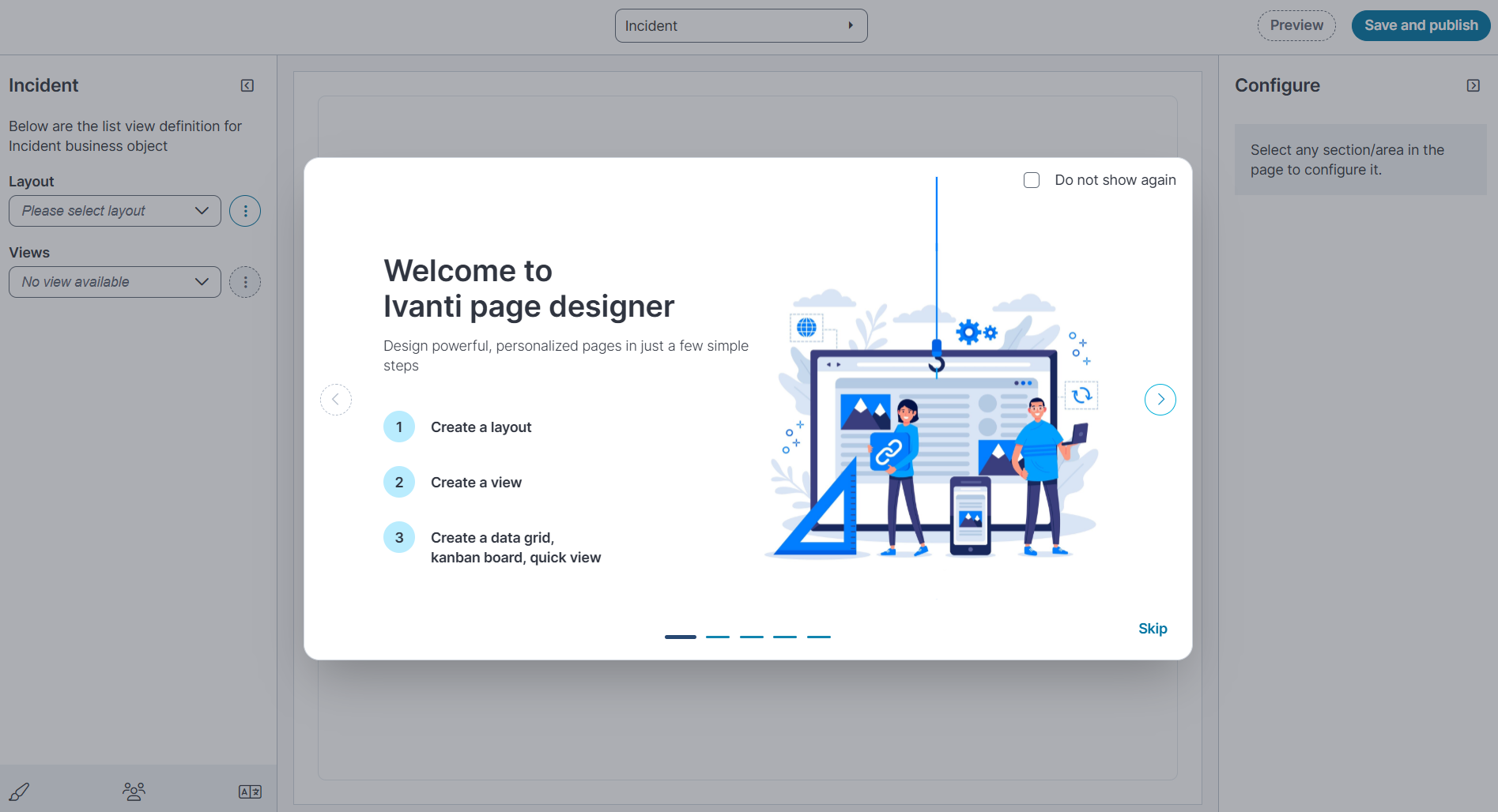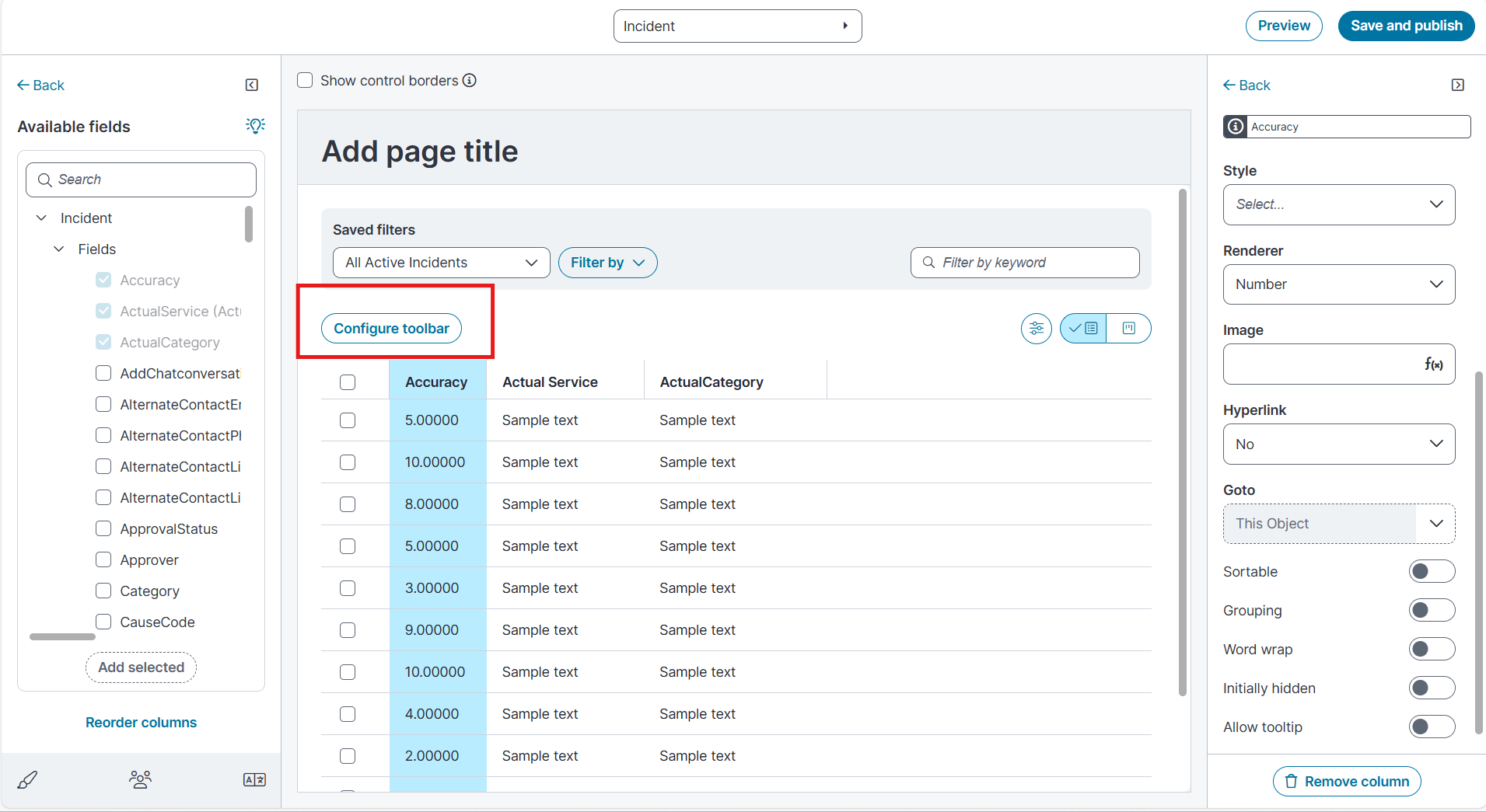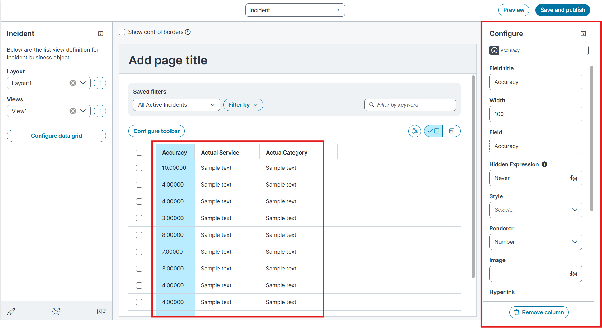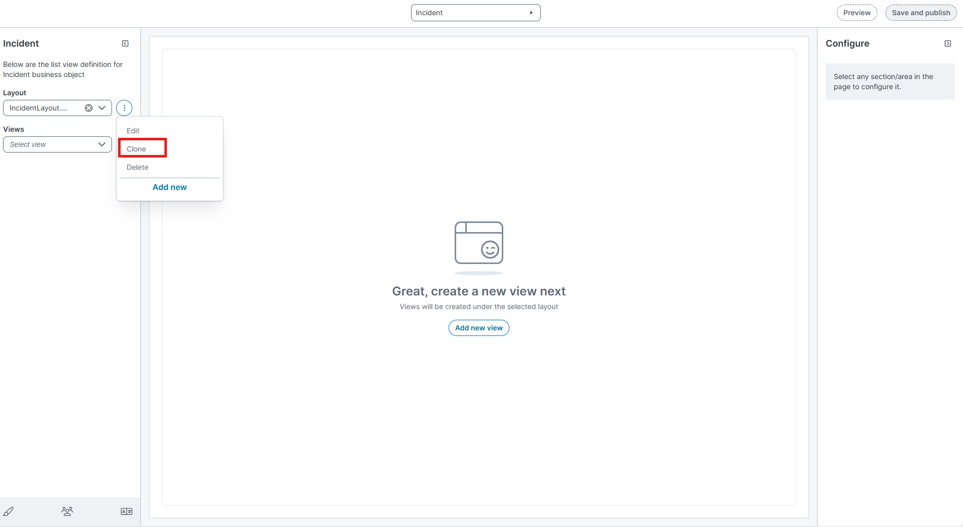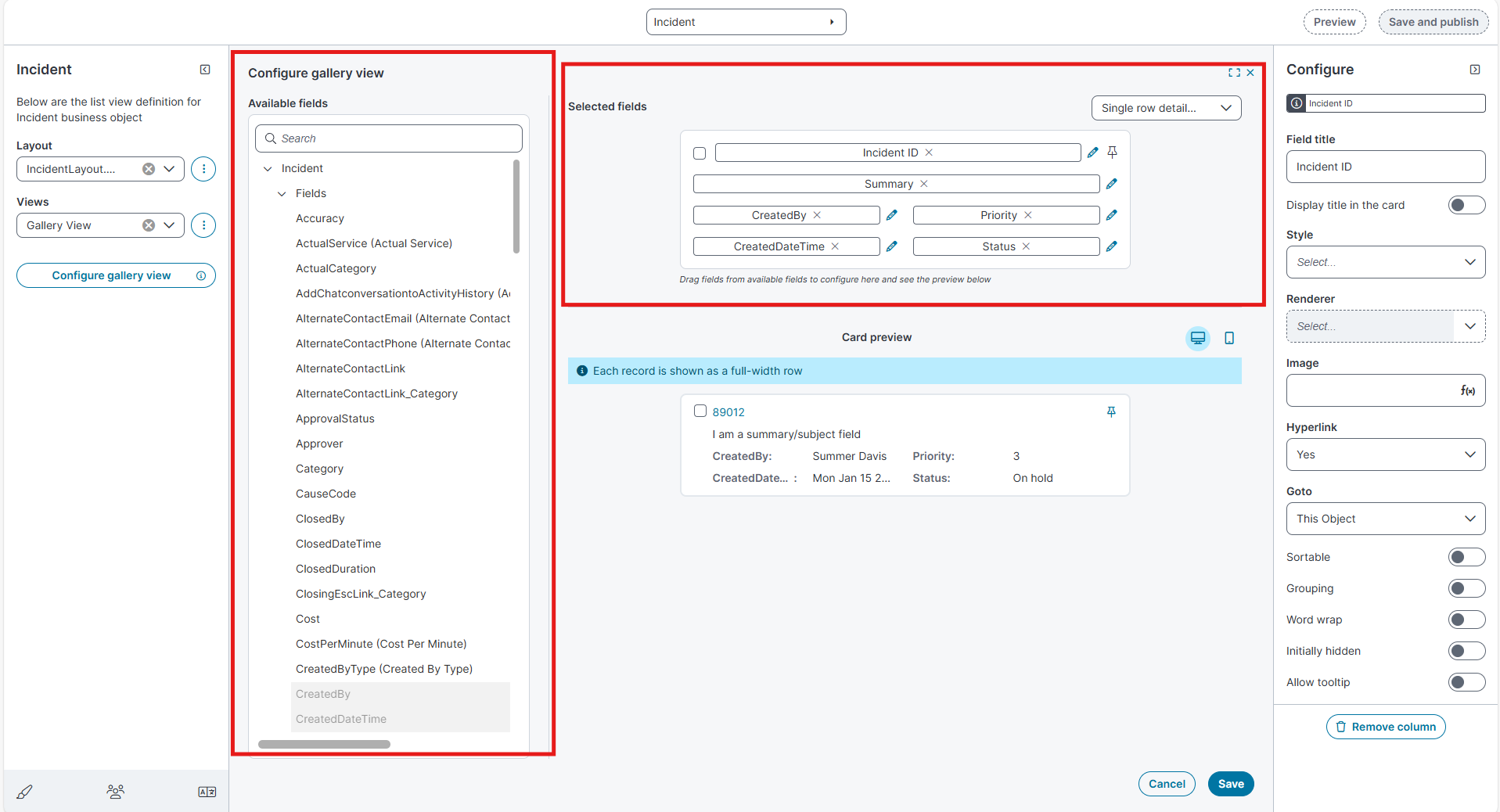 You can use the Modern Page Designer to create and assign role-based layouts for any business object. In this procedure, we use the Incident business object as an example use case. You will configure a layout, add a view (Data grid, Kanban or Gallery View), and publish a data grid layout.