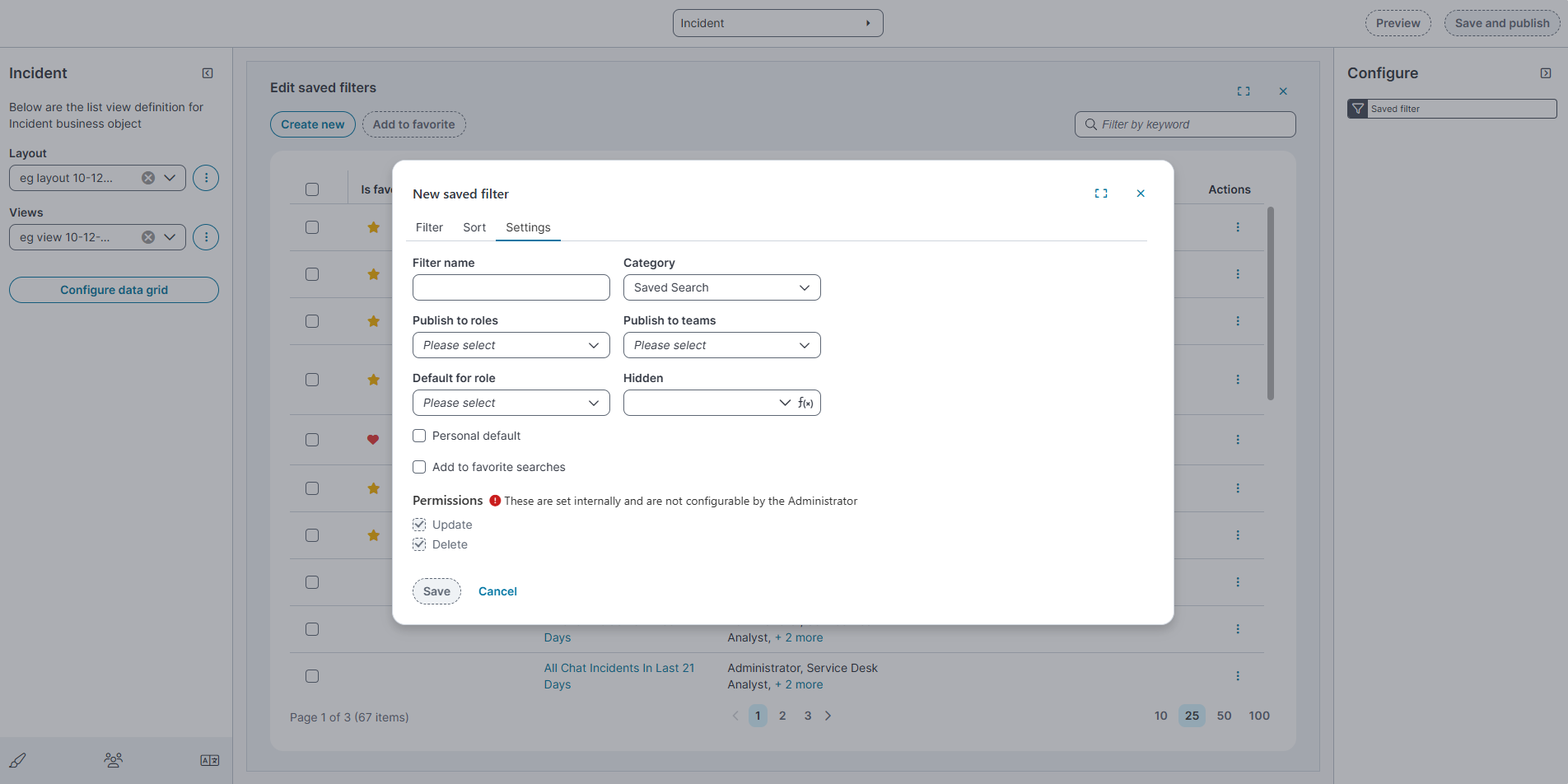 You can manage saved filters directly from the Modern Page Designer, without switching to the user workspace.