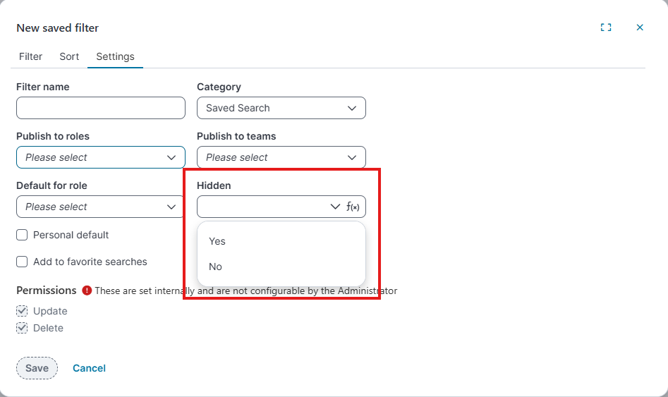 When a saved filter is hidden, it is not visible in the end user workspace.
