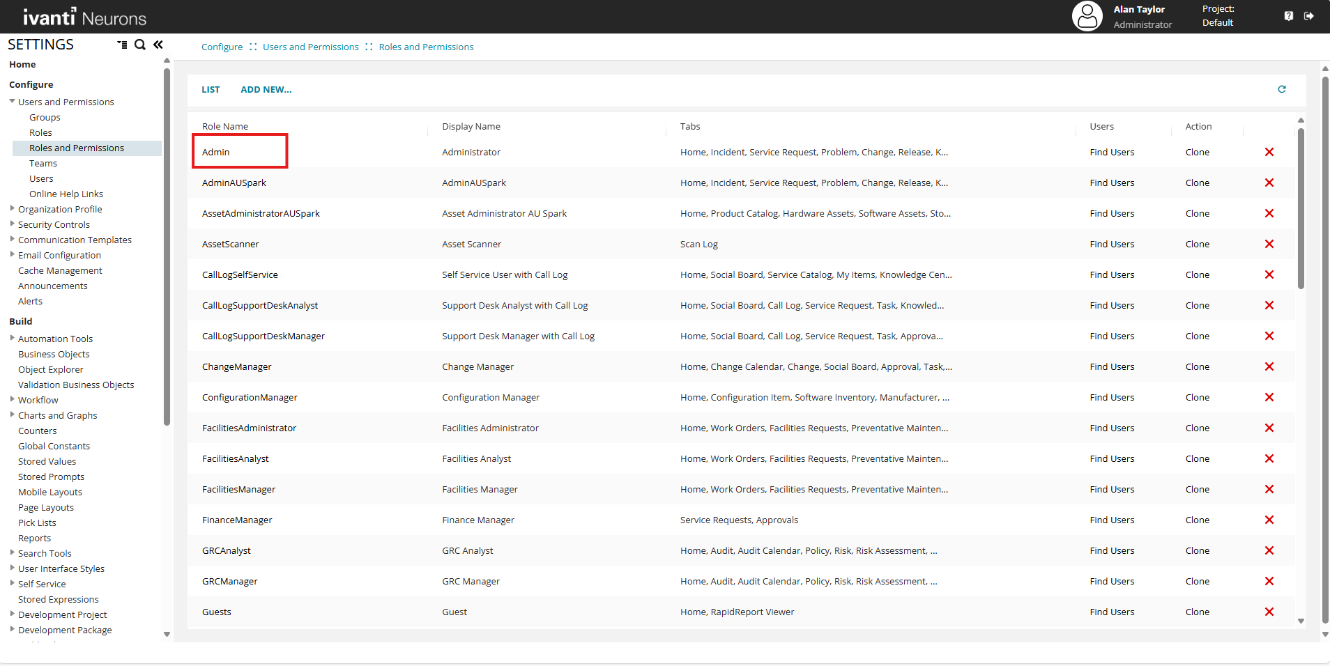 In the Configuration Console, go to Configure > Users and Permissions > Roles and Permissions.