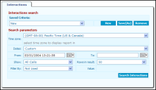 •Show - Select All calls if you want the search to return records of all interactions. Select Only calls with recordings if you want the search to include only calls that were recorded.