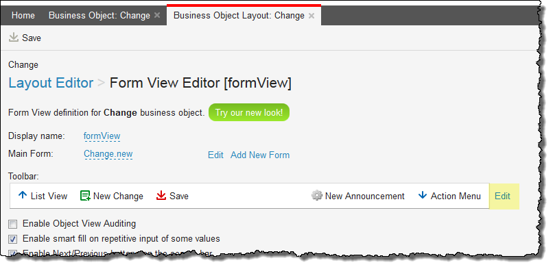6.Click Edit next to the toolbar to open the toolbar editor.