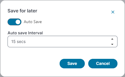 6.Optional. Click Auto Save toggle button to automatically save the service requests after the set interval duration. and set the timeout value (in seconds) in Auto save Interval field.