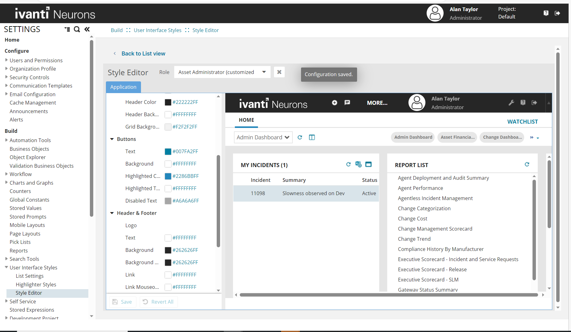 Prerequisite: Ensure that the Is Production Meta Data Read only checkbox is unchecked before proceeding with the configuration. Enabling this checkbox in the configuration environment disables all options in the Style Editor and sets the Administrator interface to Production Metadata Read Only mode. If changes to Metadata are necessary, please contact your administrator to enable them