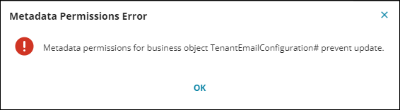 You may be limited in how you can customize some business objects. Some definitions are restricted from editing to prevent the modification or removal of required items. If you attempt to edit a restricted business object, you will typically receive a message like the following example: