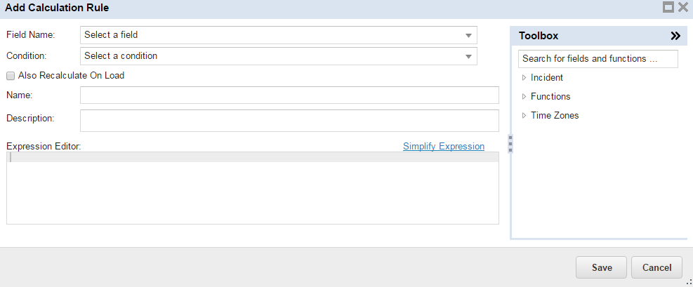 Listed by condition. The calculation rules are listed under the Whenever fields are changed set condition.