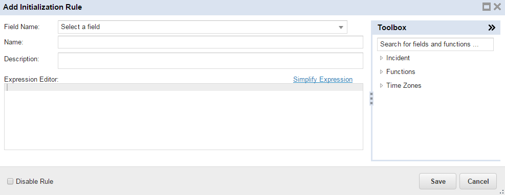 Expression Editor The expression that specifies the value that the initialization rule sets the field to.