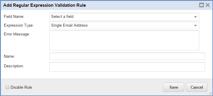 Disable Rule Specifies if the regular expression validation rule is disabled.
