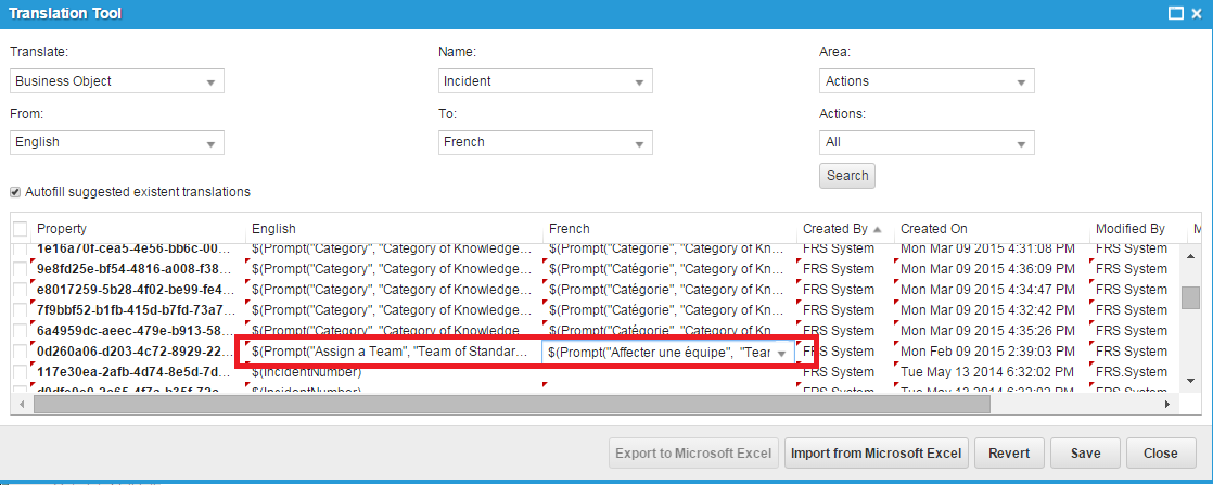 6.Enter the translated value. For example, enter $(Prompt("Affecter une equipe", "Team of StandardUserTeam")).