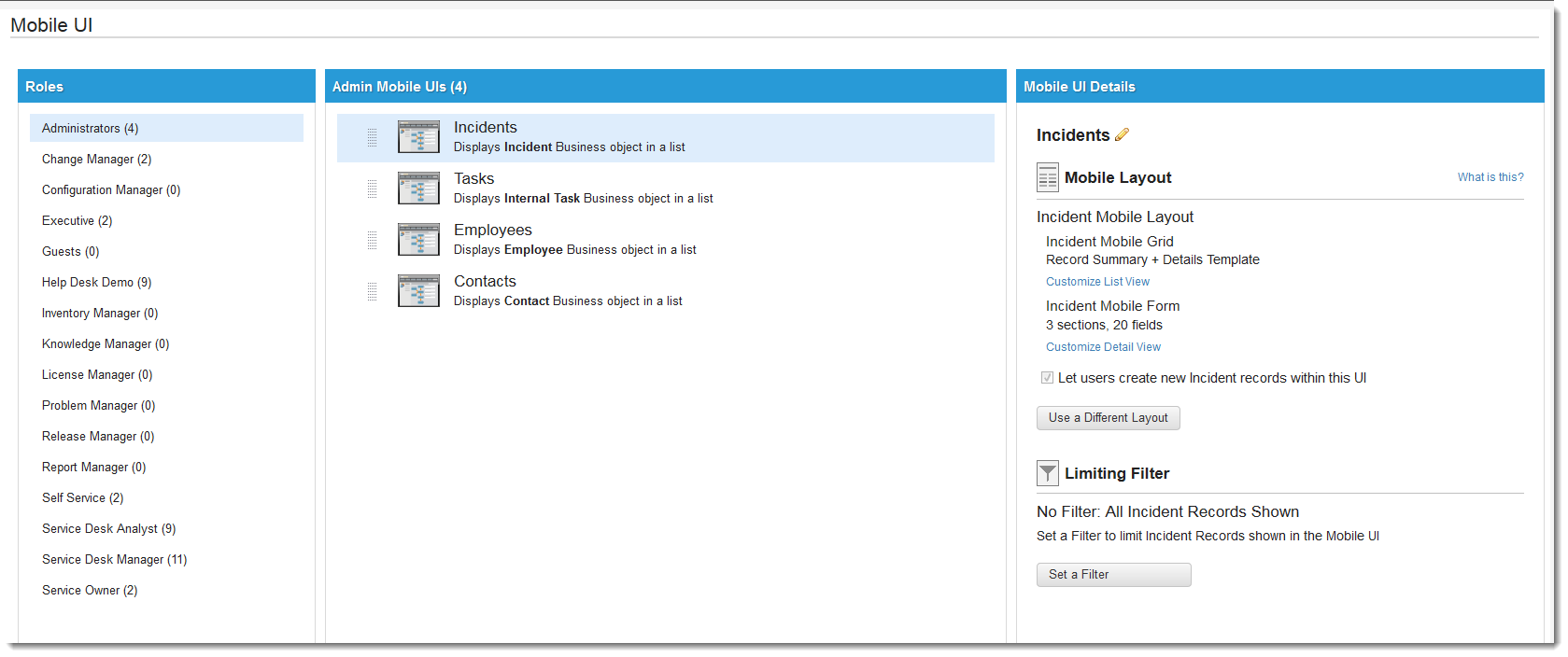 2.From the Roles column, select the role for which you are creating the mobile view.