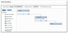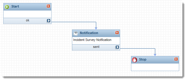 4.Ensure that the Start, Notification, and Stop workflow blocks are on the Workflow Designer. If not, you must drag the blocks onto the Workflow Designer and connect them.