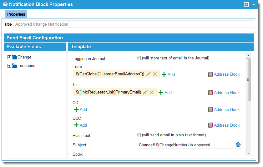 If false: Go to Notification Approved change notification