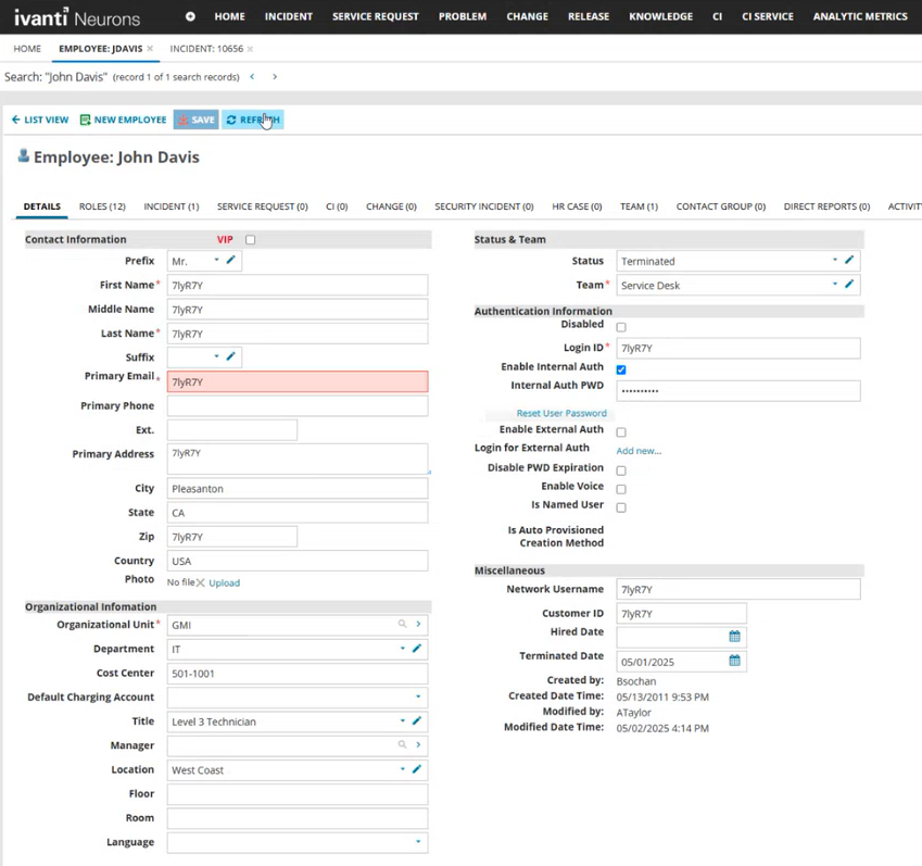 2.Go to Employee console and select the employee's record you want to anonymize.