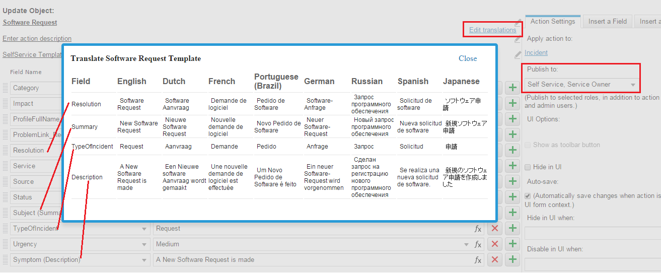 You can edit any of the English field values and provide corresponding values in the supported languages.