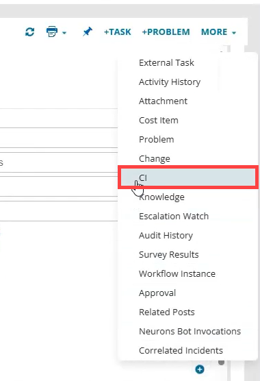 3.Select CI option from the plus menu in the child panel.