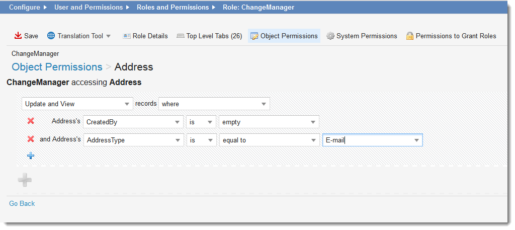 •Object Permissions: Refer to Assigning Business Object Permissions