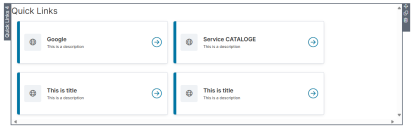 Use Quick Links to display useful links to Business Objects, workspaces or web pages. Quick Links can be displayed in your page design as lists, tiles, or a carousel.