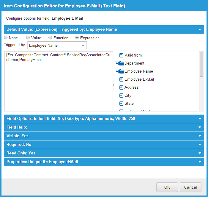 1.Within the Item Configuration Editor, expand the Field Options area.