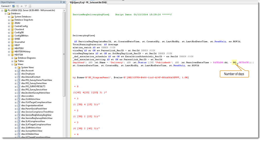 This information is taken from the last 90 days and uses the ServiceReqDeliveryAvgView business object.
