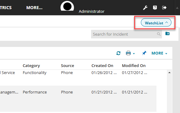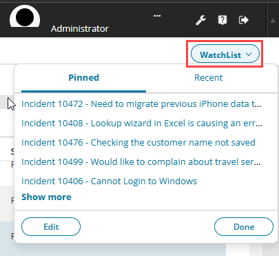 The Watch List displays all your most recently accessed items and records and the ones you have pinned to the Watch List.
