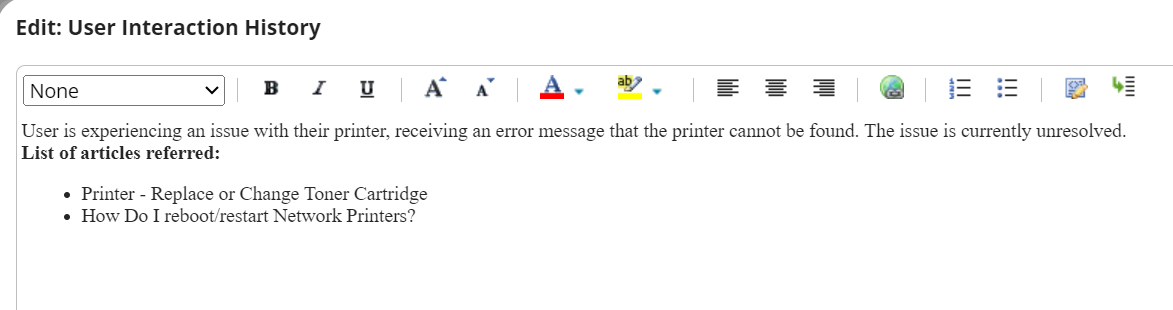 Adding the User Interaction History field to the Incident Form - Service Desk Incident Page