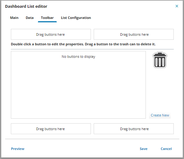 Same as the Dashboard List editor. See From the "Toolbar" Tab.
