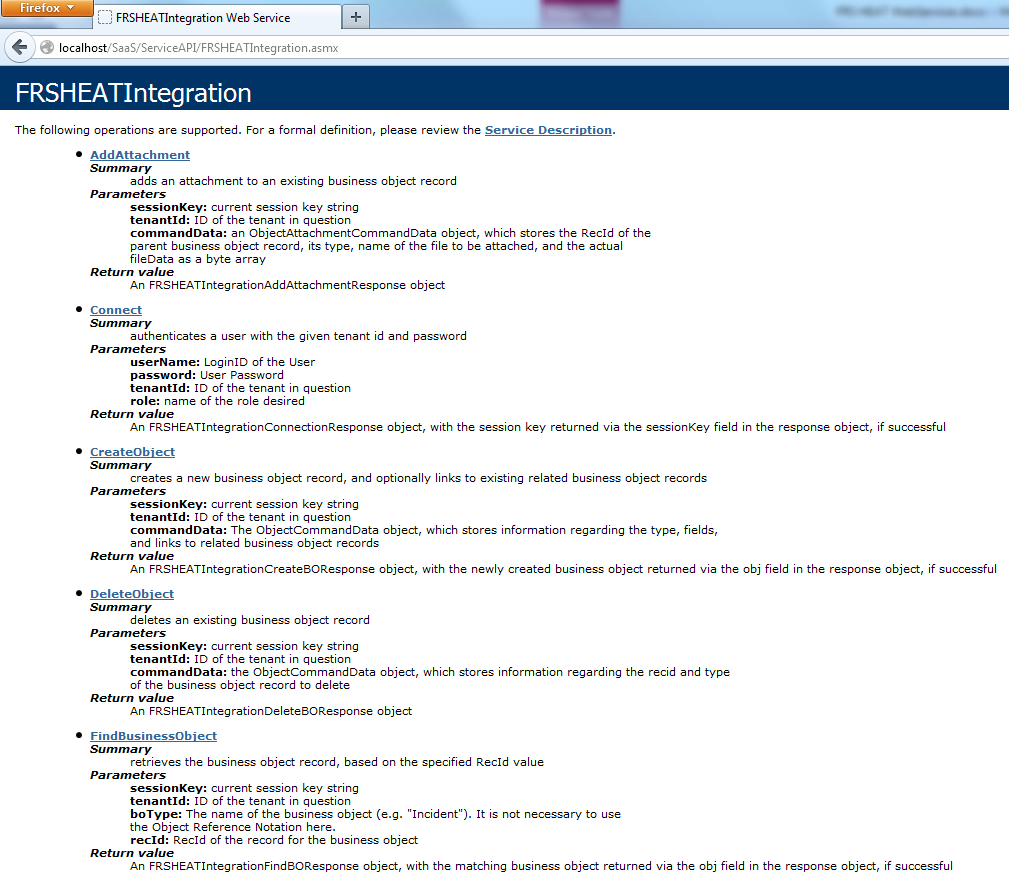 •For on-premise: http://<Tenant Name>/HEAT/ServiceAPI/FRSHEATIntegration.asmx