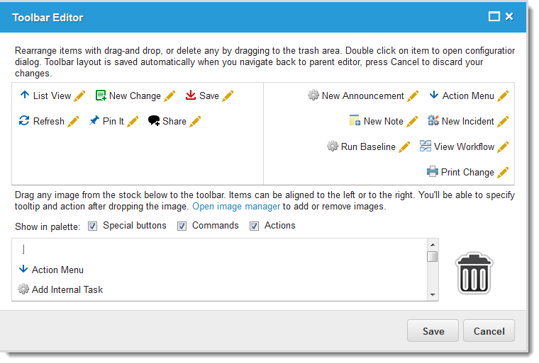 6.Click Edit next to the toolbar to open the toolbar editor.