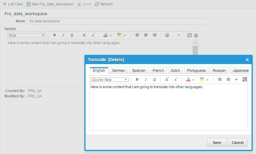 | c. | Open the workspace with the HTML content and ensure that it is the translated content that you entered. |