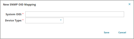 1.Select the SNMP OID Mapping tab and click the New System OID Mapping icon. A dialog box opens.
