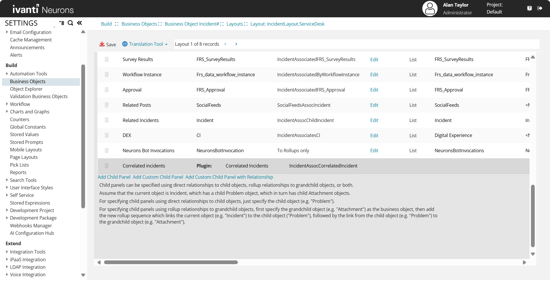 1.From the Configuration console, select Build > Business Object > Incident > Layouts.