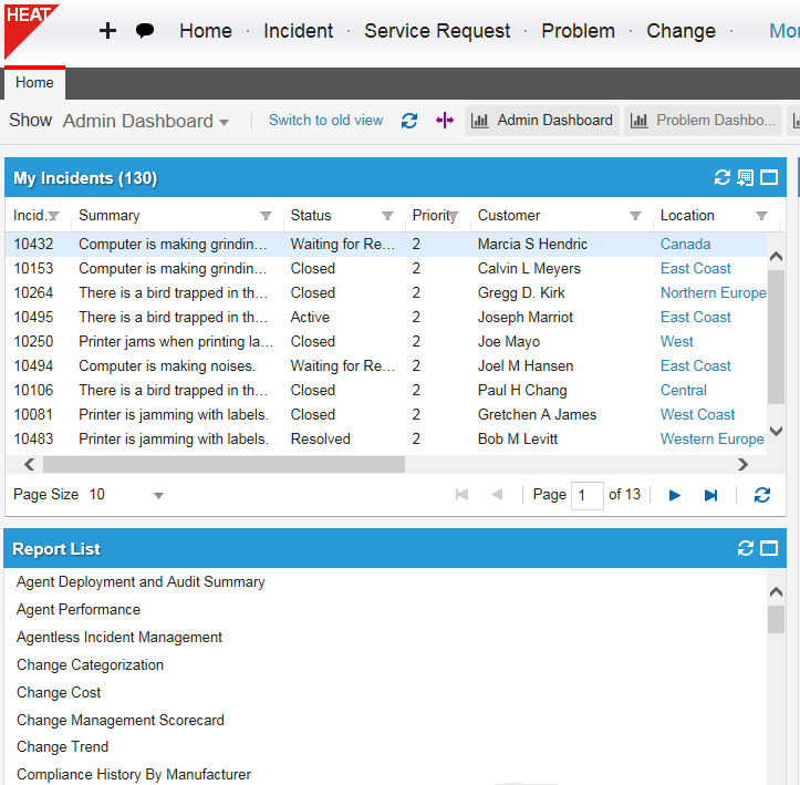 2.Click the name of your default dashboard. For example, if you are logged in as a Service Desk Analyst, click on the down arrow next to the words Service Desk Analyst.