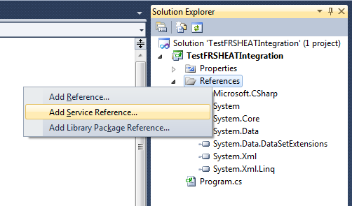 2.In the Solution Explorer, right click the References folder and select Add Service Reference.... The Add Service Reference dialog box appears.
