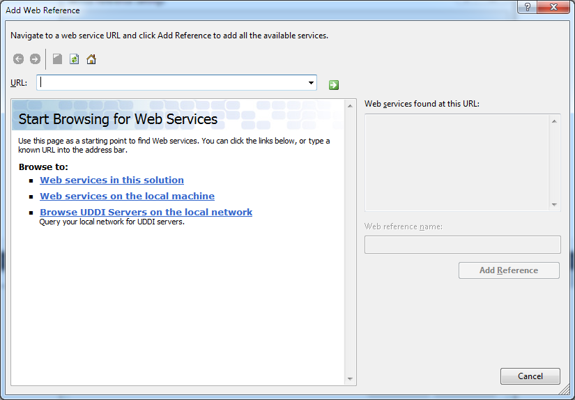 4.Click Add Web Reference.... The application displays the Add Web Reference dialog box.