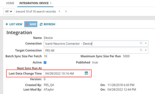 Discovery data for devices and invoices are managed by separate connectors: Ivanti Neurons Connector - Device and Ivanti Neurons Connector - Invoice. Repeat this process with each connector.