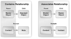 •Contains: The child business object belongs to, and is dependent on, the parent business object. The application loads, saves, and deletes the child business object with its parent business object. These relationships are listed under the Relationships tab.