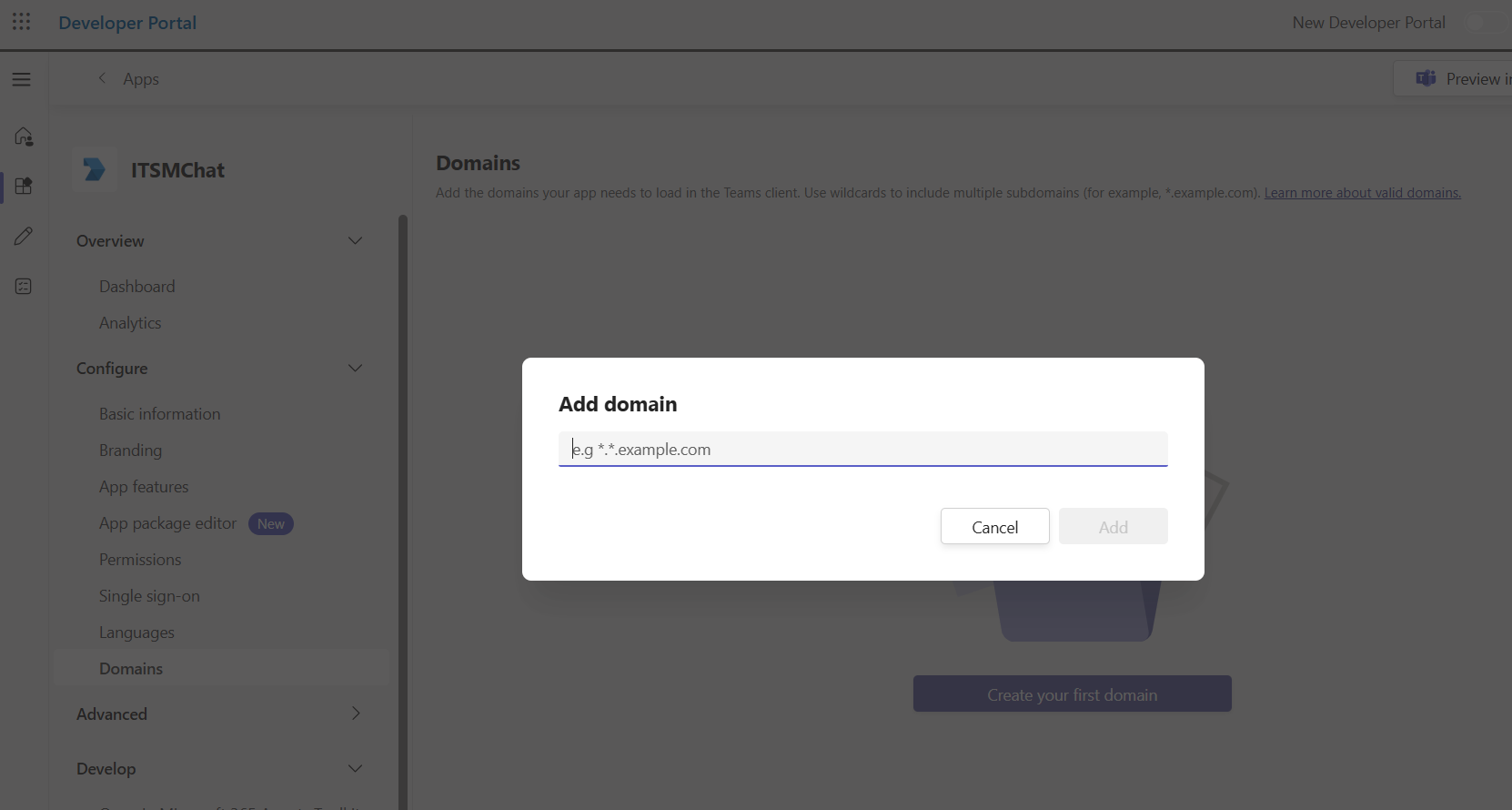When you upgrade to 2025.4 version, a new Teams feature displays KB and FAQ suggestions in pop-up windows. To support this feature, you must update the validDomains field in your existing Teams. To update the app: