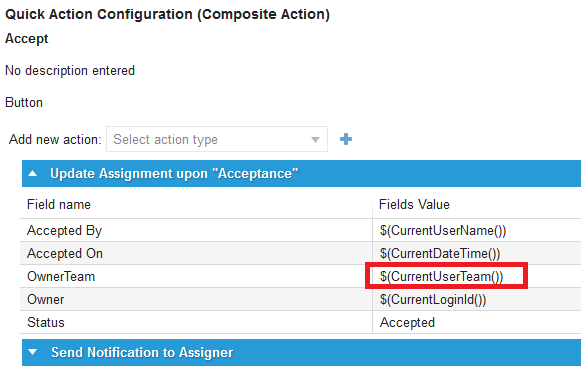 The above quick action sets the team of the current session as the task team when the task is accepted.
