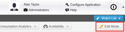 4.Click the down arrow next to the name of the dashboard you want to modify and then choose the edit icon
