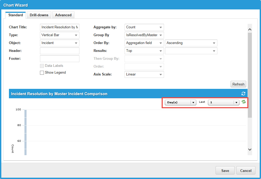 | a. | In the top left panel, expand Incident > Fields and select IsRelatedIncidentResolutionUpdate. |